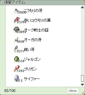 配置変更がきた場合に経験値効率が落ちるかどうかが問題だけど、とりあえずハイオーク削除でなければいけそうか。 で、収集品がここまで溜まりました。ここまで溜まるともったいなくて売るに売れない。 ![]() この時点で12Mちょっとになります。Lv99になるまで売らずに貯める予定。 すぐ赤蝙蝠の翼と兄貴証は3万個届きそうですが、他のアイテムはいくつたまるかなぁ〜。後1月溜めまくります! 重すぎてやってられない。寝るわ。 |